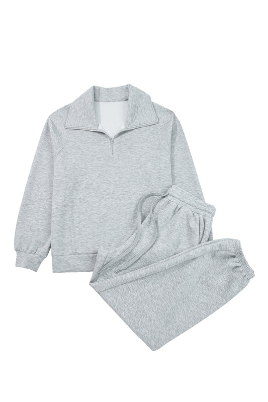 Light Grey Zip Collar Long Sleeve Top Drawstring Pants Set