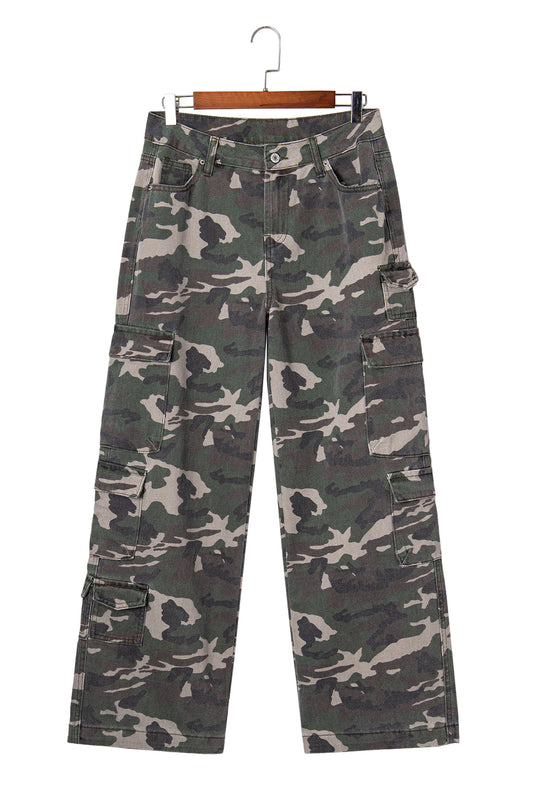 Green Camo Multi Pocket Cargo Wide Leg Jeans
