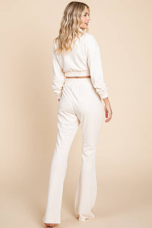 1900-CROP ZIPPER FRONT BELL BOTTOMS CASUAL SET
