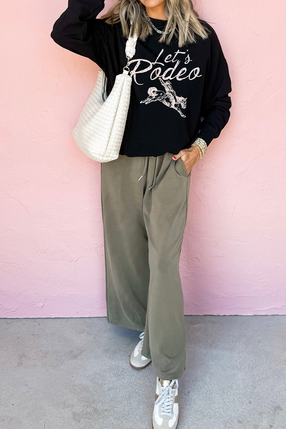 Black Lets Rodeo Western Print Pullover Sweatshirt