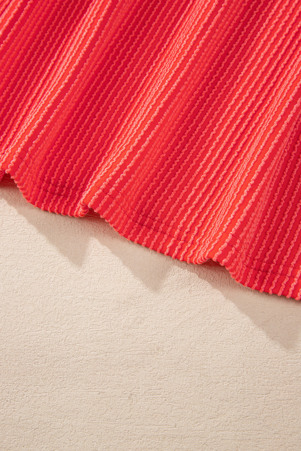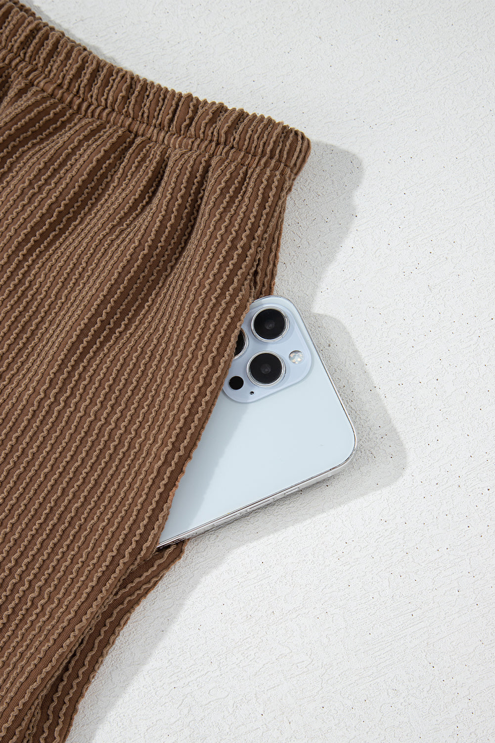 Chestnut Corded Long Sleeve Top and High Waist Shorts Set