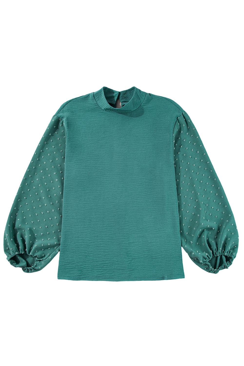 Russet Orange Swiss Dot Balloon Sleeve Patchwork Crinkle Blouse